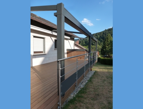Fourniture et pose de terrasse en bois, garde-corps, escalier, pergola en bois et aluminium, store, abri, carport.